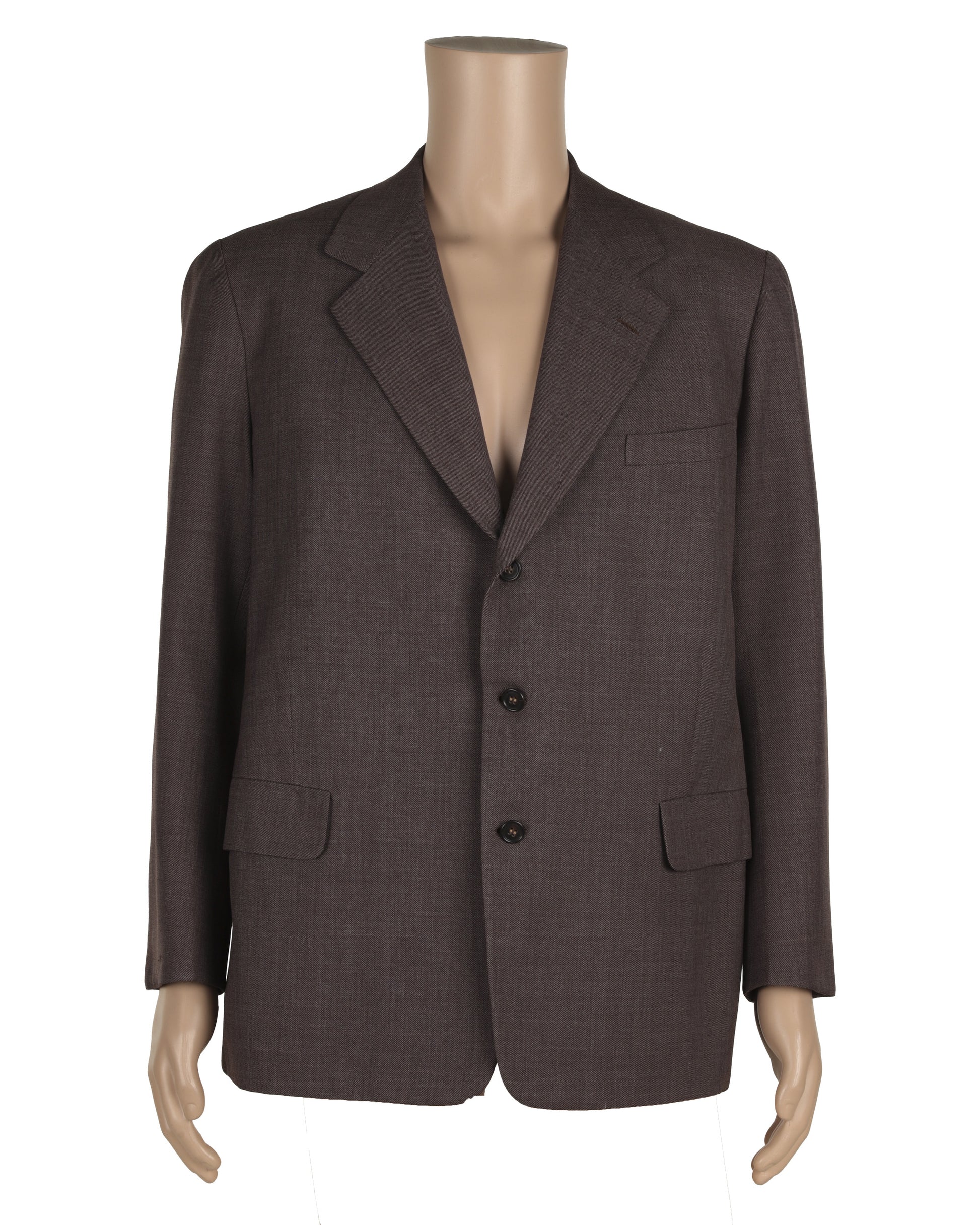 This brown tweed suit jacket was acquired by the production for use by Edward G. Robinson in the acclaimed 1949 film House of Strangers, directed by Joseph L. Mankiewicz and co-starring Richard Conte and Susan Hayward. This finely tailored piece represents the sophisticated mid-century style associated with Robinson’s on-screen persona and offers an authentic connection to Golden Age Hollywood costume design.