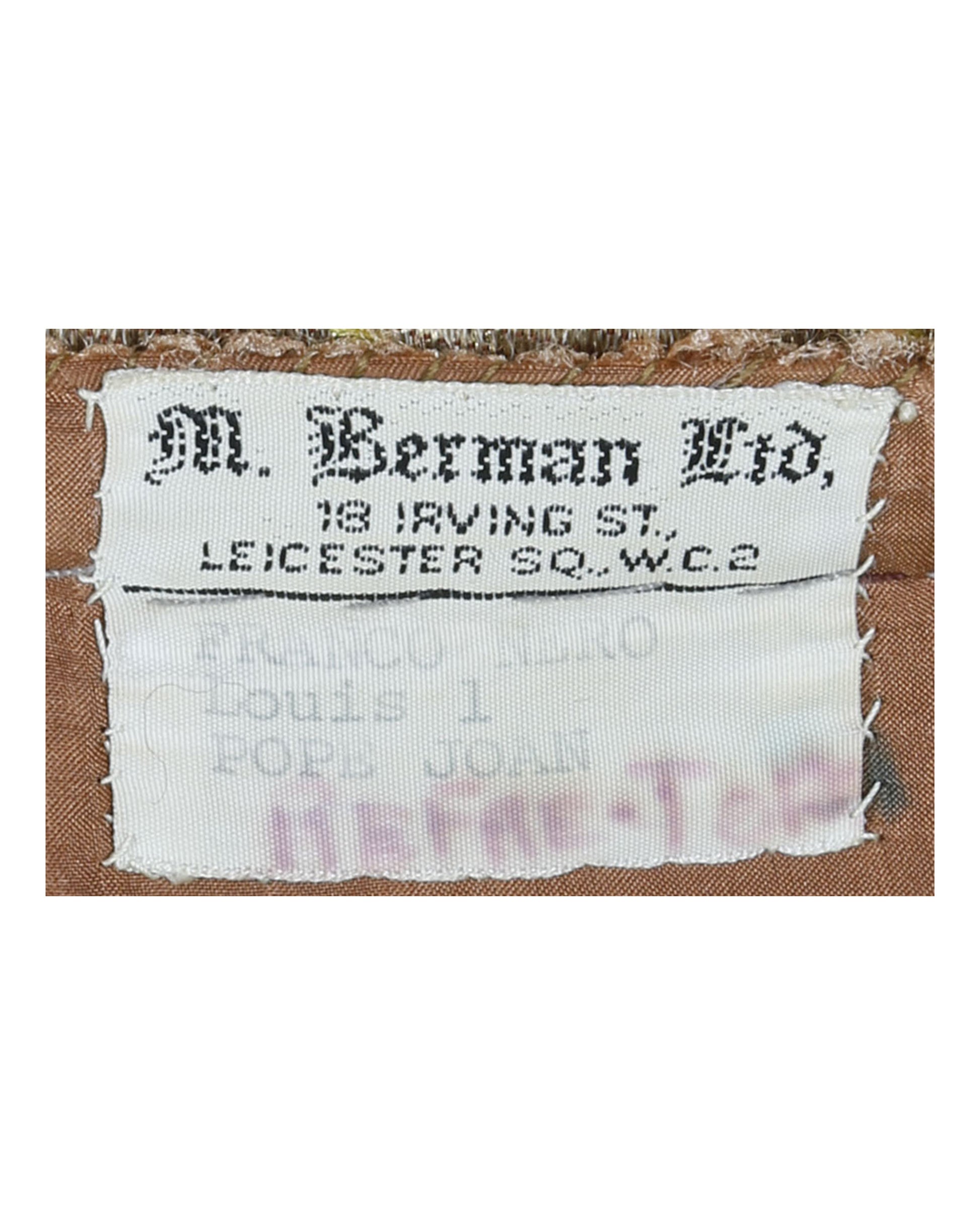 An interior label sewn inside the collar reads: “M. Berman Ltd. / 18 Irving St., Leicester Sq., W.C.2 / Franco Nero / Louis 1 / Pope Joan / Refae-Tor,” confirming its use and association with Franco Nero’s role in the film. This tunic represents a rare opportunity to acquire a genuine screen-worn costume from a major historical production, backed by the craftsmanship and provenance of one of the world’s most respected costume makers.