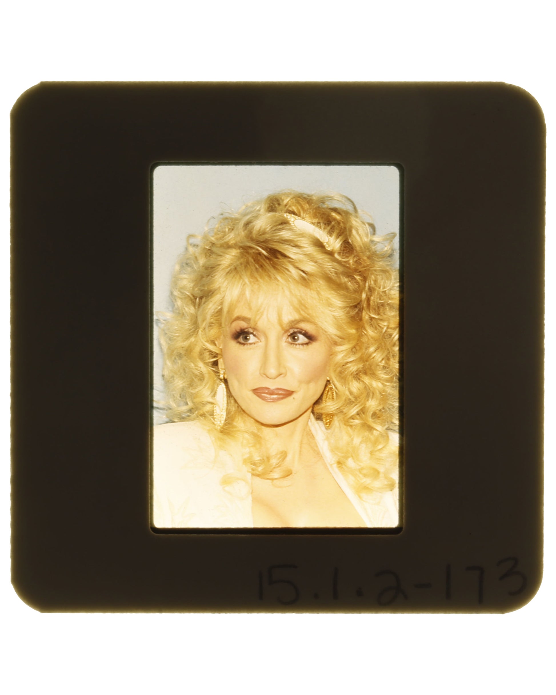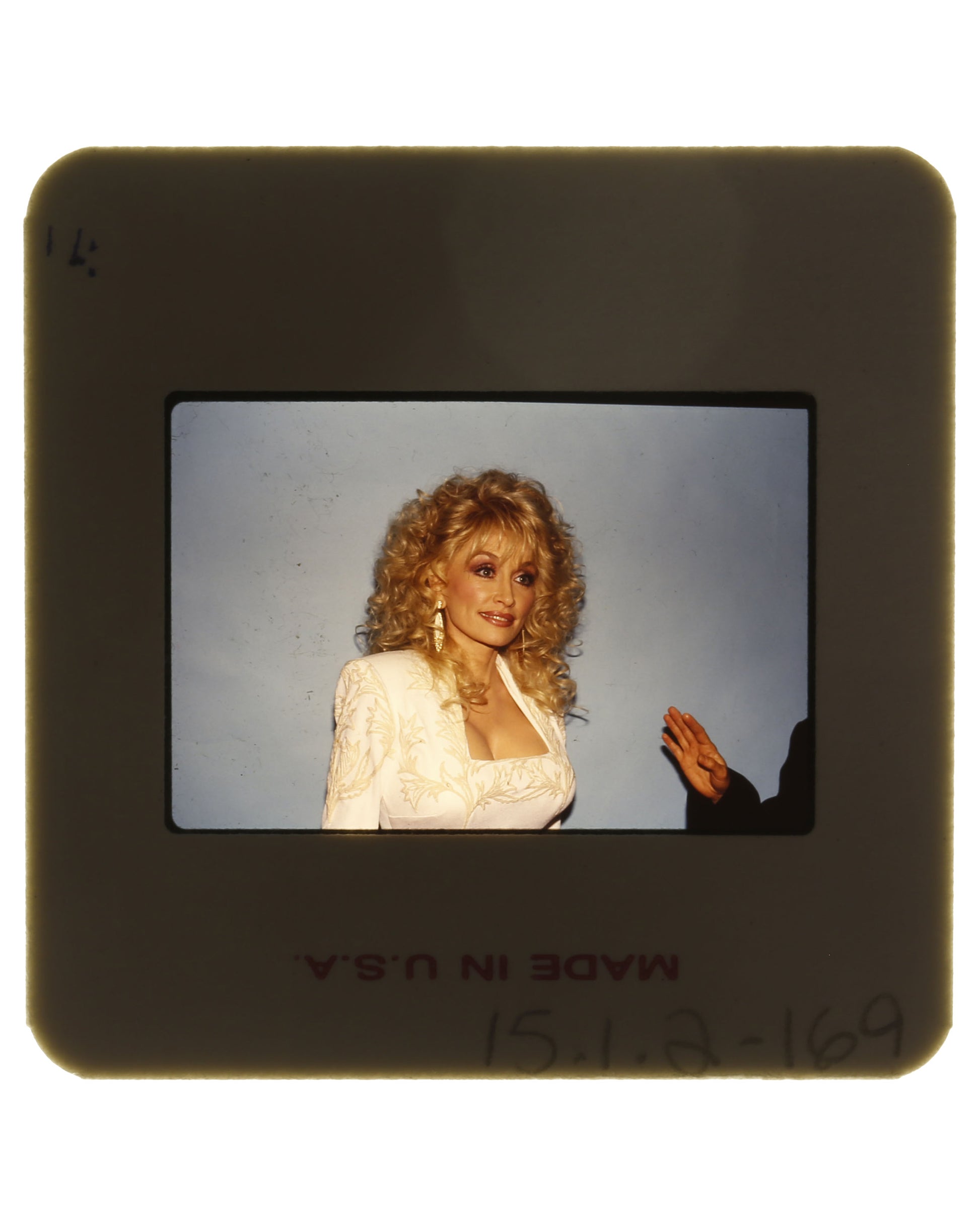 Own a rare piece of music and pop culture history with this set of 6 original 35mm color photo slides featuring Dolly Parton at an unknown event. Each slide captures the iconic country music legend in her signature glamorous style — big hair, bold earrings, and a stunning white outfit. Set includes 6 individual color slides (see images for exact frames).