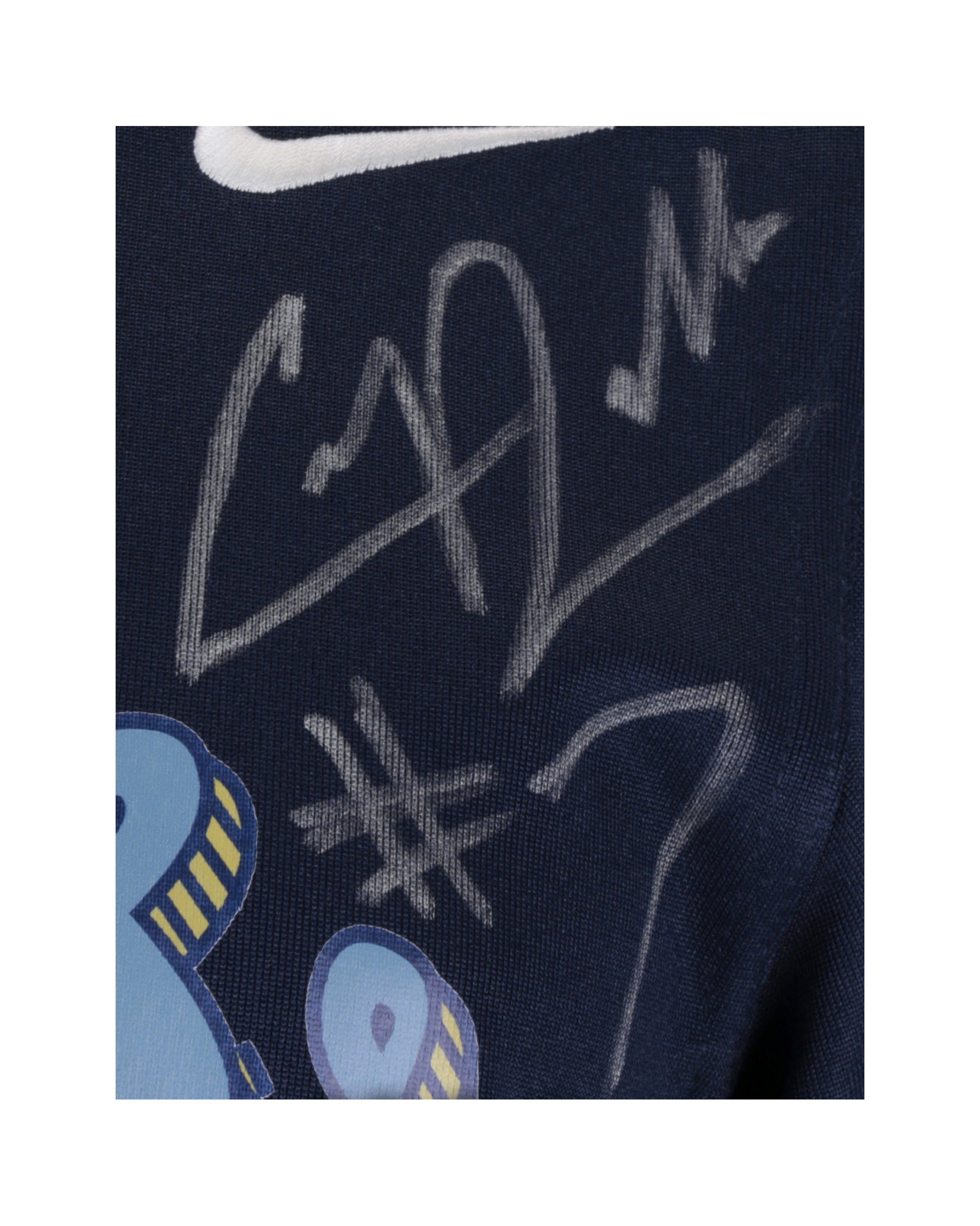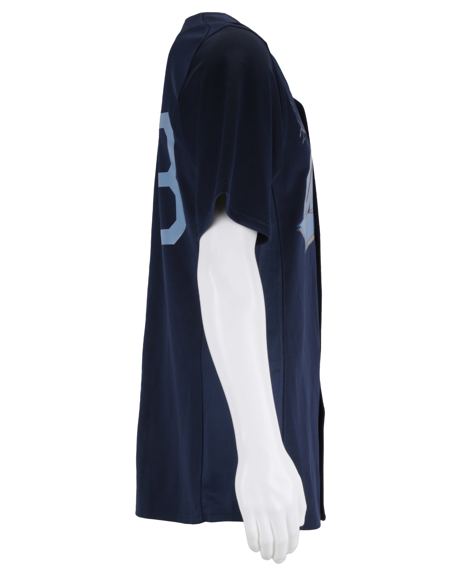 Autographed baseball jersey from the 2015 film The Outfield. This navy blue Nike jersey features “Owls” screen-printed across the front and the number 23 on the back.