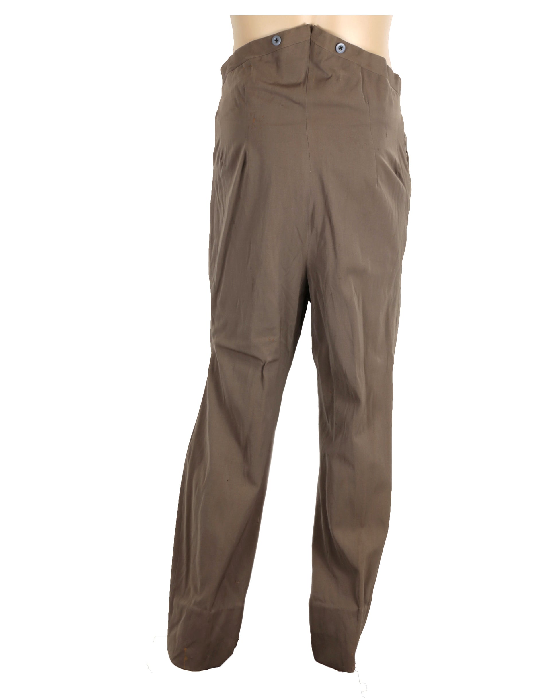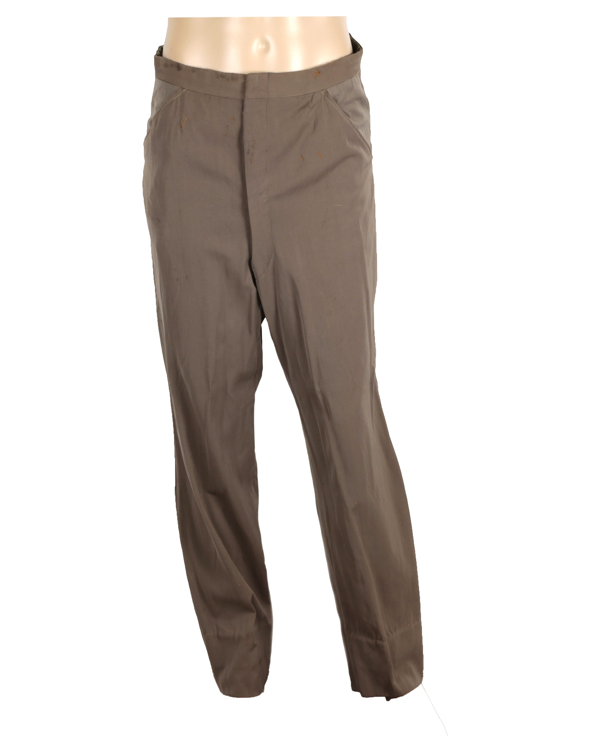 The matching brown gabardine pants feature a button and hook-and-eye clasp closure on the front. The interior bears a tag handwritten and stamped with “CHAS.LEVY & SON / LOS ANGELES / RRO - S-62 / Mr. RICHARD DIX / Date 9 24 31 No 155990,” with additional handwritten text reading “M / 05372-6” below the tags. Together, the jacket and pants exemplify classic 1930s Western costume design, combining elegance with functionality while preserving a direct connection to Richard Dix’s wardrobe.